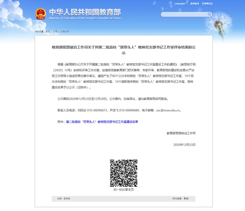 2020年12月23日,据教育部门户网站公示消息,依照《教育部办公厅关于开展第二批高校“双带头人”教师党支部书记工作室建设工作的通知》(教思政厅函〔2020〕12号)安排和评审工作方案,经省级党委教育部门把关推荐、专家评审、教育部党的建设和全面从严治党工作领导小组成员单位集中审议,遴选产生了80个公办本科院校“双带头人”教师党支部书记工作室、10个民办本科院校“双带头人”教师党支部书记工作室、10个高职高专院校“双带头人”教师党支部书记工作室。pg娱乐官网教工一支部书记刘伟博士“双带头人”工作室榜上有名。据悉,这是内蒙古自治区高校唯一入选的工作室。