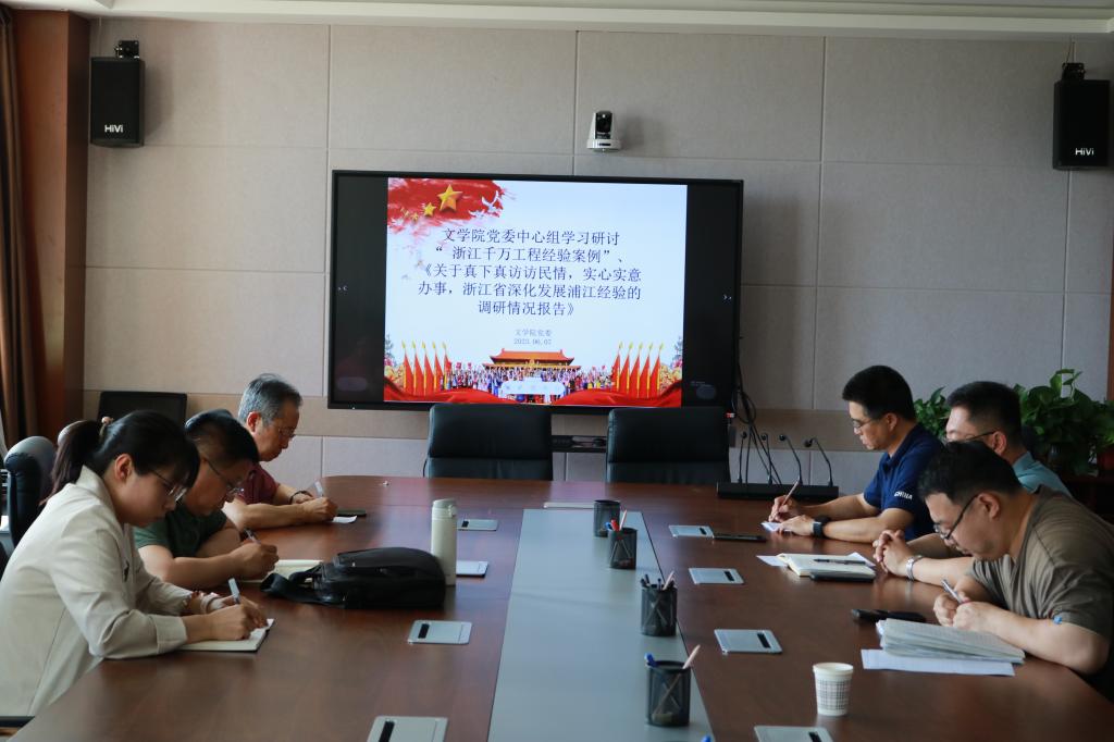 2023年6月7日上午,在盛乐校区pg娱乐电子游戏官网入口会议室,pg娱乐电子游戏官网入口党委委员、班子成员、支部书记等党委中心组10人,围绕“浙江千万工程经验案例”、《关于真下真访民情,实心实意办事,浙江省深化发展浦江经验的调研情况报告》召开学习研讨会。