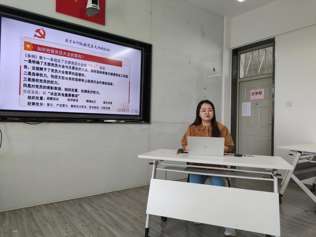 6月12日上午,在赛罕校区田家炳书院楼432教室,pg娱乐电子游戏官网入口党委举办党支部工作能力提升专项培训。培训邀请校党委组织部组织科科长苏丹同志围绕严格落实《中国共产党支部工作条例(试行)》,结合工作实际,就党支部工作内容,工作重点,工作机制,“三会一课”制度化、常态化建设,工作中需要注意的问题等方面进行了培训。学院部分党委委员,各党支部书记、委员参加了培训。培训将进一步加强学院基层党组织的规范化建设,激发党支部工作活力,促进党建与业务的深度融合。