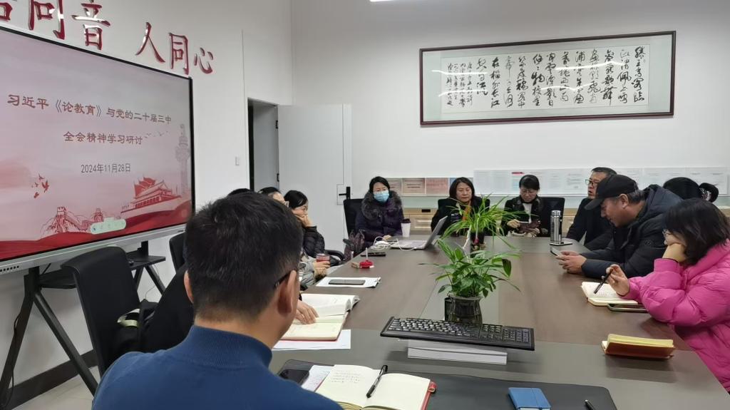 2024年11月29日,pg娱乐官网教工第一党支部召开党的二十届三中全会精神学习研讨会。会上还集体学习了习近平的《论教育》。