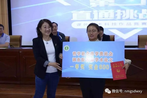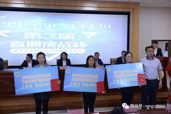 经过激烈的角逐,在哲学社会科学类社会调查报告和学术论文组中,pg娱乐电子游戏官网入口唐子睿等同学的《巴彦淖尔市磴口县阴山岩画考察》荣获一等奖;罗娜等同学的《乌兰察布市三点方言调查》荣获三等奖;刘亚健等同学的《内蒙古中西部地区高中生整本名著的阅读情况调研》荣获优秀奖。与此同时,pg娱乐电子游戏官网入口还在此次大赛中斩获“优胜杯”。
