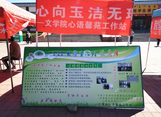为积极配合国家心理健康教育工作,响应我校心语馨苑心理健康工作站的号召,pg娱乐官网于2017年5月23日在群鸿餐厅西门组织了“5•25大学生心理健康日”宣传活动。