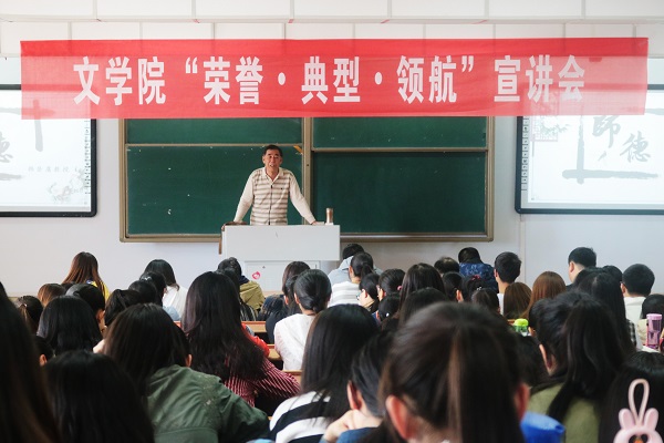 为学习先进事迹,弘扬先进精神,同时加强师德师风建设,培育未来的高素质教师队伍。2018年4月26日下午,pg娱乐电子游戏官网入口在行知楼306教室举办“荣誉·典型·领航”主题宣讲会暨先进集体、先进个人表彰大会,特邀pg娱乐电子游戏官网入口韩登庸教授为pg娱乐电子游戏官网入口2017级学子讲授当代师风师德的建设。