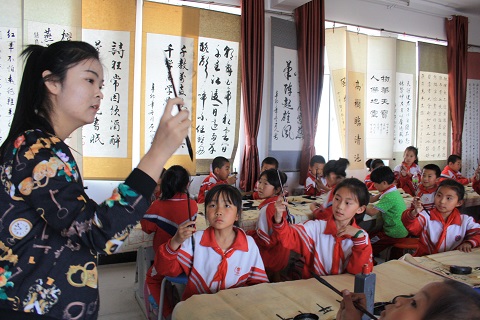 5月7日下午,pg娱乐官网志愿者实践队组织同学们到和林格尔县第五小学进行支教活动。活动分为古诗词、书法、绘画、音乐、舞蹈和体育6组。同学们各司其职,活动效果良好。