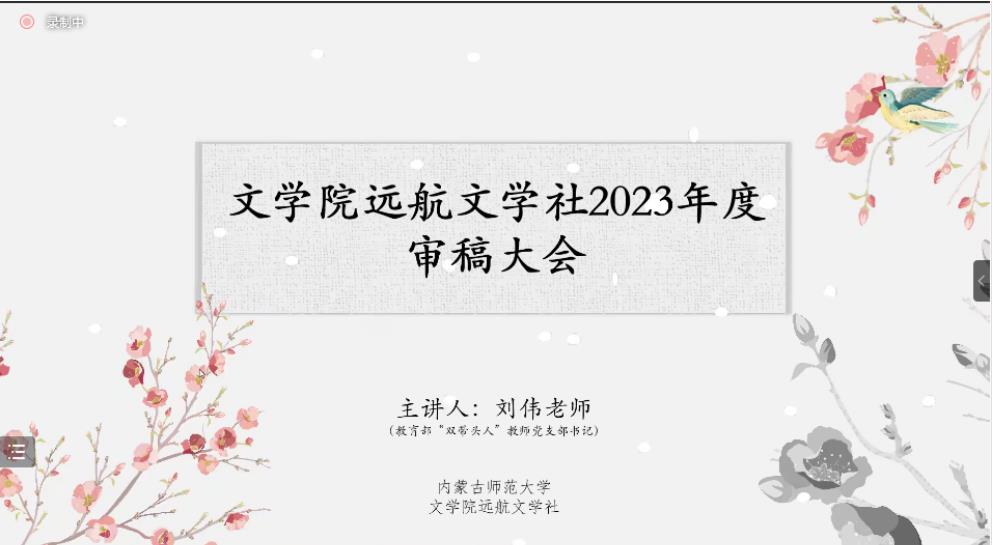 为认真学习贯彻党的二十大精神,培养pg娱乐官网学生的人文情怀,提高学生专业素养,2023年1月29日晚,pg娱乐电子游戏官网入口远航文学社召开《春鸣》杂志2023年第1期审稿会。本次会议采取线上方式进行,28名师生参加了本次审稿会。会议由汉语言文学系主任、教工第一支部书记刘伟教授主持。