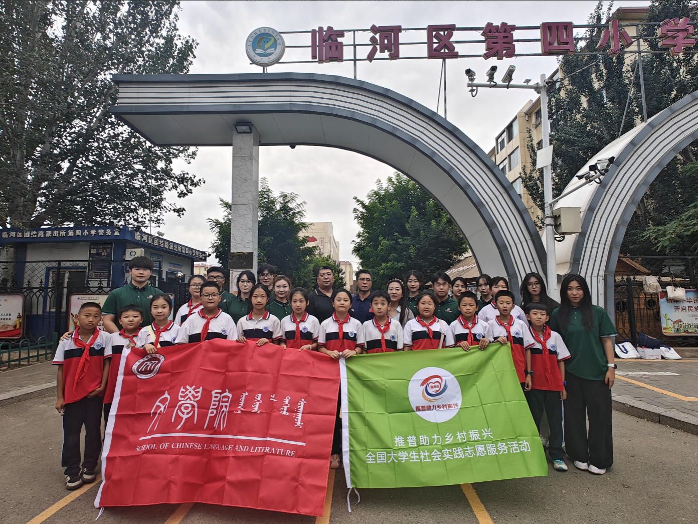 7月30日下午,pg娱乐官网“长河语润”北疆实践队赴内蒙古自治区巴彦淖尔市临河区第四小学开展"推普助力乡村振兴"主题公益教学活动。活动伊始,实践队中的巴彦淖尔籍队员结合自身成长经历,为学生们分享了各学科的高效学习方法,指出学习应当绵绵用力、久久为功,并勉励同学们将个人理想融入国家发展大局。在普通话推广和教学环节,队员们立足当地方言特点,系统讲解了平翘舌发音技巧及常见的音变规律,通过设计“绕口令挑战”“你画我猜”等互动式教学游戏,将语言知识融入趣味活动,有效提升了学生们的普通话应用能力与规范表达意识。