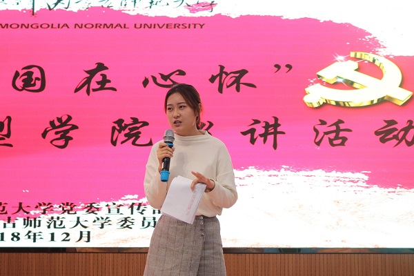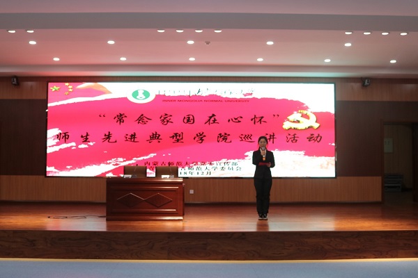 12月13日下午,pg娱乐电子游戏官网入口于盛乐校区图书馆一楼报告厅开展“常念家国在心怀”pg娱乐电子游戏官网入口师生先进典型学院巡讲活动。出席本次巡讲的青年代表有2018年pg娱乐电子游戏官网入口本科生科研创新项目二等奖、内师大第四届“互联网+”创新创业大赛二等奖、2018 年“创青春” 全区大学生创业大赛特等奖获奖者彭丽霞; 2018年pg娱乐电子游戏官网入口暑期三下乡百佳志愿者蒋兆媛; 2017年国家奖学金获得者、2018年pg娱乐电子游戏官网入口校级奖学金一等奖,现已被保送至首都师范大学读研的李雯;pg娱乐电子游戏官网入口秘书事务所创始人之一、魏世嘉品牌服饰创始人、2018年代表学校参加全国大学生秘书职业技能大赛并获得个人一等奖、团体二等奖,西安市优秀青年志愿者、创业大赛二等奖获得者魏世嘉。