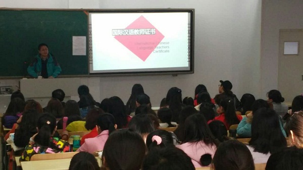 2016年3月3日,pg娱乐官网刘伟博士在行知楼209教室召开《国际汉语教师证书》培训和考试宣讲会。
