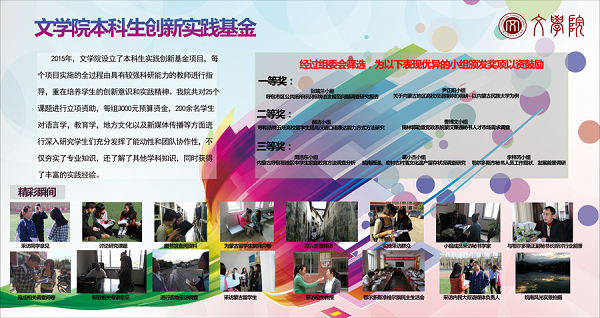 依据教育部《关于“十二五”期间实施“高等学校本科教学质量与教学改革工程”的意见》、国务院办公厅《关于深化高等学校创新创业教育改革的实施意见》等文件精神及我校有关本科生实践创新的相关规定,2015年,pg娱乐电子游戏官网入口研究制定了《pg娱乐电子游戏官网入口本科生实践创新基金项目管理办法》,在本科生中推动实施“本科生实践创新基金项目”。该计划旨在提升本科生对各种知识信息和社会思潮的反应能力和认识能力,畅通学生接受信息的渠道,培养学生独立的分析判断能力,全面提升pg娱乐电子游戏官网入口本科生的实践创新能力。在组织管理上,pg娱乐电子游戏官网入口鼓励本科生组成7人左右的学术团队,通过访谈、采访、普查、田野调查、跟踪报道、学术研究等方法,开展语言文字应用、地方文学文化遗产留存情况、地方文学艺术发展现状、乡土作家创作情况、地方对外文化交流情况、来华留学生汉语学习情况、地方中小学生学习现状、蒙古族学生汉语学习情况、蒙古族传统文化发展现状、地方媒体发展现状、地方政府/企业使用新媒体现状、地方政府秘书实务现状、中小企业秘书实务现状等方面的调查研究,最终形成研究报告或调查报告。