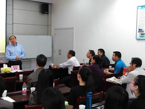 李大勤教授作了题为《论对外汉语教师学术语感的培养》的专题讲座。李大勤教授从自然语感、学术语感、汉语作为SL的教与学三方面讨论了对外汉语教师如何培养学术语感的问题。他指出:“良好的专业素养中有个非常重要的组成部分,那就是语言知识素养。其中学术语感的形成是语言知识素养养成的一个重要标志。”“不论是从汉语作为第二语言教授还是作为第二语言学习的角度看,汉语学术语感的培养都是一个核心的目标或任务。 母语或第一语言获得者基本的自然语感是在无意识状态下获得的,但其学术语感必须通过学习和专门的训练才能形成。”李大勤教授用“‘前/后’时、空意义上的错位”等具体、生动的语言教学、研究实例为师生作了精彩的学术演讲。