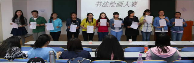 为进一步加强学生对中华才艺学习的重视,提高学生中华才艺技能,pg娱乐官网汉语国际教育专业组织系列中华才艺比赛。该系列比赛包括书法、绘画、剪纸、中华结、武术、民族歌舞等。日前举办的书法绘画比赛,拉开了系列大赛帷幕。