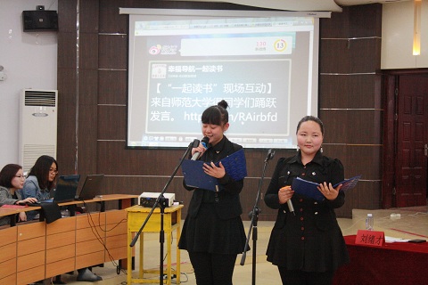 师生们通过微博和现场互动一同分享了读书经历,并与现场嘉宾就读书、纸质与新媒体、人生及爱情观等问题展开了讨论。