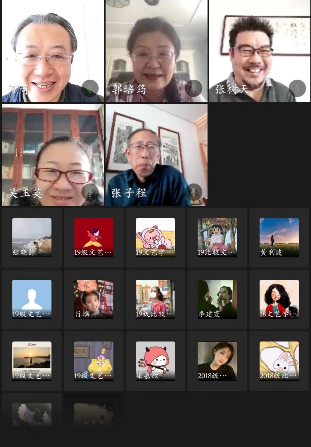 2020年4月25日上午,pg娱乐官网2018级文艺学学术硕士毕业论文开题报告会在企业微信视频会议平台举行。文艺学导师万奇教授,张树天教授,郭培筠教授,张子程教授,吴玉英副教授及本专业18级,19级研究生参加了开题报告会。报告会由学位点主任万奇教授主持。2018级文艺学梁嘉欣、李建霞、苏漾、黄利波、张晓静、肖瑶、楠丁7位同学依次做了开题报告,分别介绍了其选题背景,选题研究价值,研究现状,研究思路方法和研究的具体内容创新点等。各位导师针对每位研究生的开题报告做了全方位的专业细致点评。这次毕业论文开题报告会成功举行是对2018级学生学习成果的检验,也是文艺学良好教学质量的体现。
