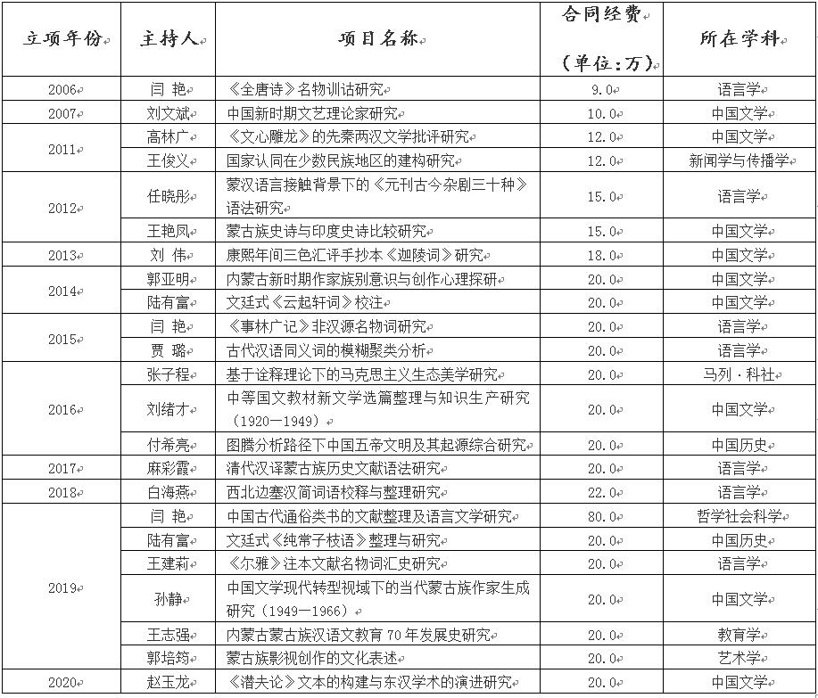 2006年以来pg娱乐电子游戏官网入口获批国家社科基金项目一览表