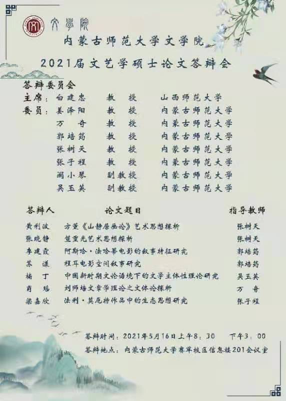 pg娱乐电子游戏官网入口2021届文艺学硕士论文答辩会
