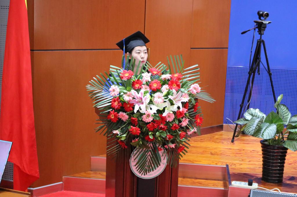 2018级文艺学专业的梁嘉欣代表毕业生发言。梁嘉欣的发言围绕感谢和感恩展开,立志将带着母校的希冀,带着pg娱乐电子游戏官网入口领导和老师们的嘱托,背起行囊,踏歌而行。