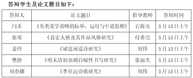 pg娱乐电子游戏官网入口2022届古代文学硕士论文答辩会公告
