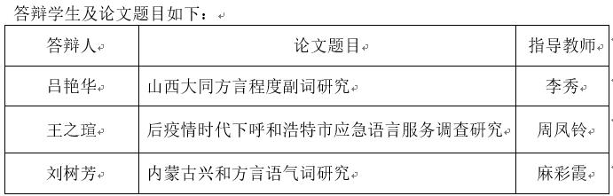 pg娱乐电子游戏官网入口语言学与应用语言学专业2022届硕士学位论文答辩公告