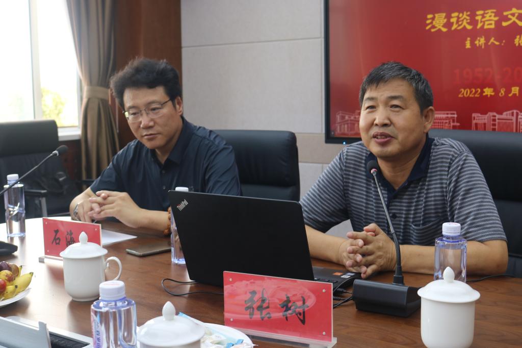 2022年8月7日下午,pg娱乐电子游戏官网入口70周年院庆系列活动之一——“学术讲座”在盛乐校区学院楼A区pg娱乐电子游戏官网入口会议室举行。pg娱乐电子游戏官网入口1990届校友、全国优秀教师、乌海市第一中学校长张树为母校师生作了题为“漫谈语文教育”的学术讲座。讲座由pg娱乐电子游戏官网入口副院长石海光主持。