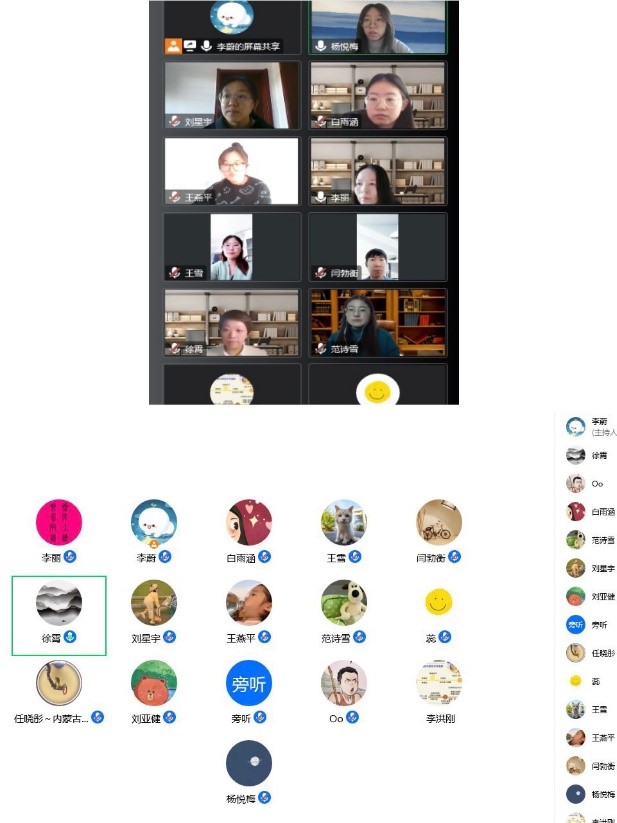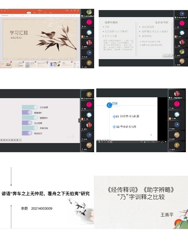 本次沙龙共分三个环节:第一个环节,2022级学生范诗雪、闫勃衡做学习汇报;第二个环节,2020级学生杨悦梅、刘星宇、白雨涵做文献检索与论文写作经验分享,期间,徐霄、王雪两位老师也为同学们分享了切身的科研经验。第三个环节,对2021级学生李蔚、王燕平提交的论文进行研讨。活动中,各位老师进行了精当的点评和悉心的指导。最后,李丽教授对本次学术沙龙活动进行了总结。