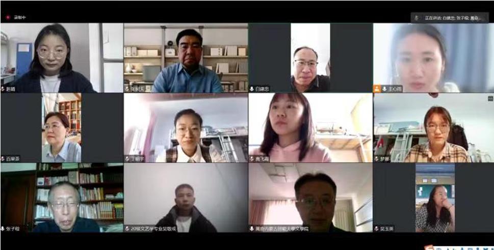 2023年3月4日下午,pg娱乐电子游戏官网入口文艺学专业2020级硕士研究生预答辩在腾讯会议上成功举行。文艺学方向的导师万奇教授、郭培筠教授、张树天教授、张子程教授、白建忠教授、吴玉英副教授及本专业20级、21级、22级研究生参加了预答辩。预答辩由白建忠教授主持。文艺学专业20级的王心雨、梦娜、丁明宇、吴敬成4位同学依次对论文进行陈述,分别阐述了论文的研究对象、研究方法、框架、内容和创新之处等。各位导师针对每位研究生的论文做了面面俱到且细致周密的点评。本次预答辩的成功举行是对文艺学专业20级学生三年来学习成果的检验,也体现了文艺学专业学生扎实良好的学风。