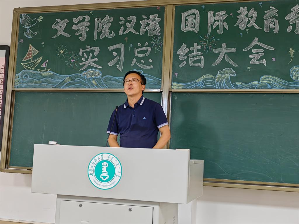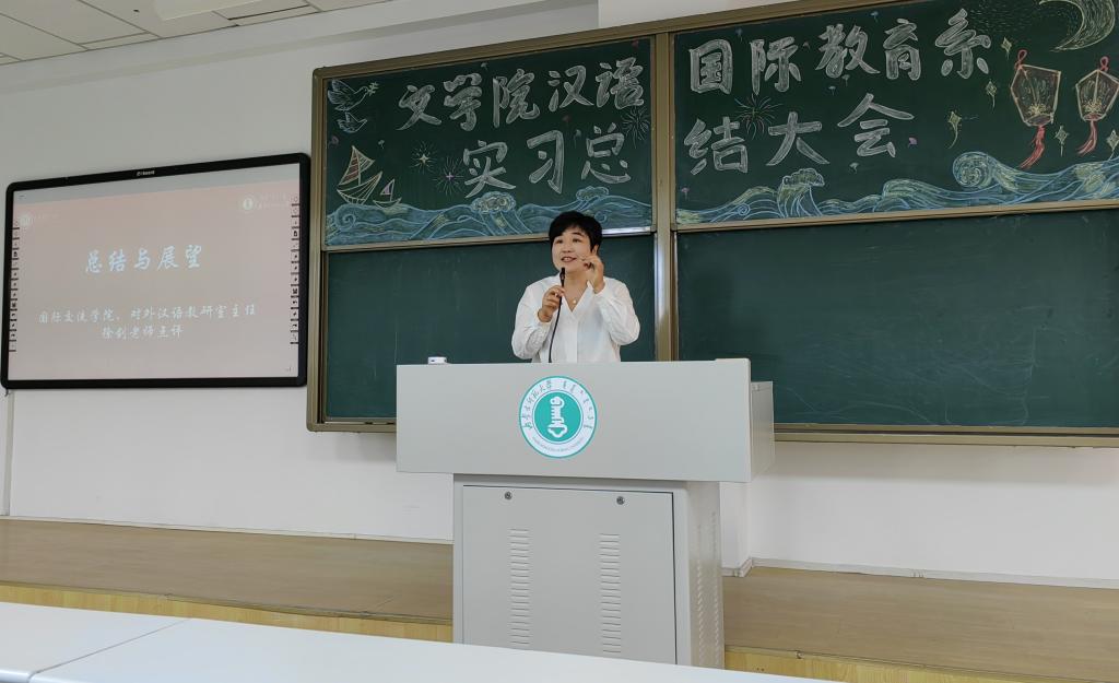 最后,国际交流学院徐剑老师对此次实习工作进行评价和总结。徐老师高度评价了2020级同学们的实习表现,并从教学、班主任工作、文化活动三个方面对未来的实习工作提出宝贵建议。徐老师希望同学们热爱自己的专业,互相学习,共同进步,一起为国际中文教育事业贡献力量。