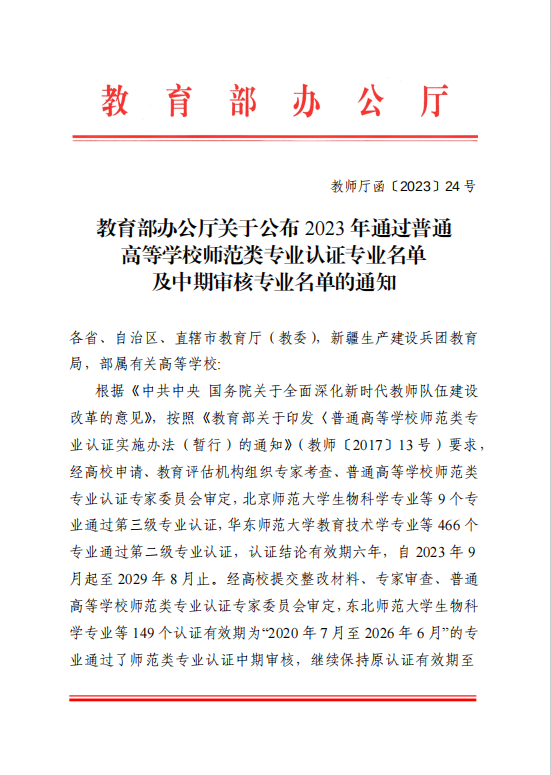 近日,教育部公布了2023年通过普通高等学校师范类专业认证的专业名单,pg娱乐官网汉语言文学专业通过中等教育第二级认证。