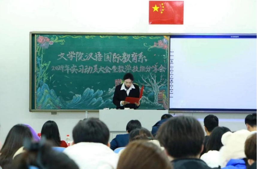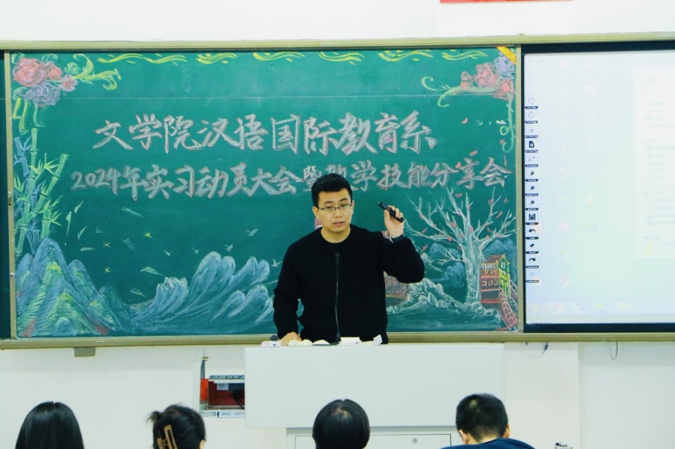 为激发学生实习热情,引导学生做好实习准备,推进汉语国际教育专业学生实习工作提质增效,pg娱乐官网于2023年12月21日上午,在盛乐校区行知楼422教室成功举办了汉语国际教育系2024年实习动员大会暨教学技能分享会。