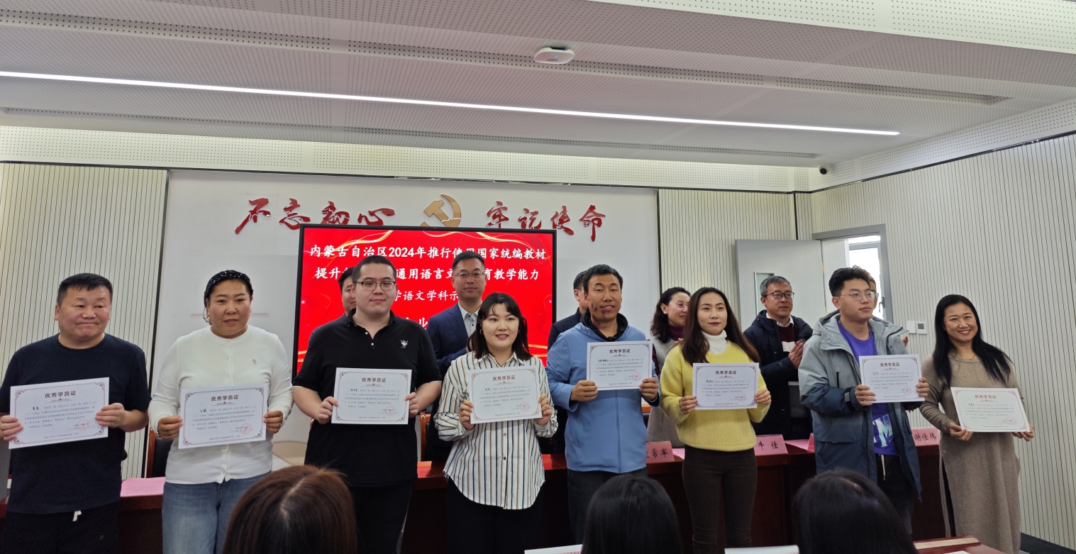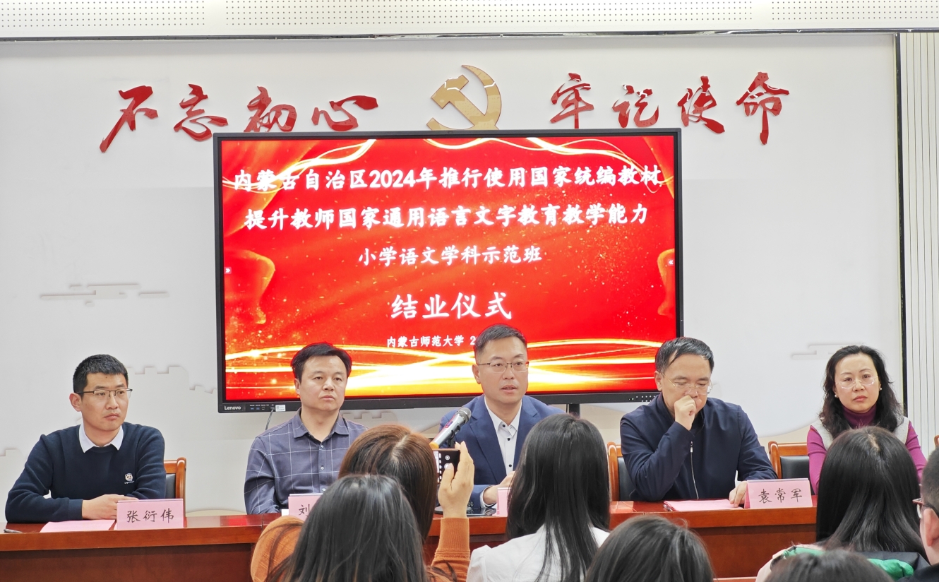 2024年12月20日,pg娱乐官网和继续教育学院共同承担的内蒙古自治区2024年推行使用国家统编教材提升教师国家通用语言文字教育教学能力小学语文学科示范班培训工作圆满完成,参训的48位学员全部顺利结业,当日举办了隆重的示范班结业仪式。pg娱乐官网副院长张钧、汉语言文学系主任李瑞春、青年教师谢佳伟出席示范班结业仪式。