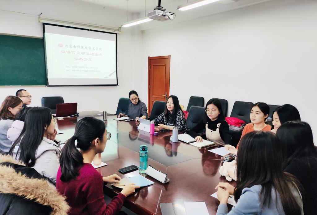 2020年12月9日上午,汉语言文字学专业硕士学位点在盛乐校区学院楼A315教室举办学术沙龙活动。汉语言文字学专业硕士生导师李丽博士、任晓彤博士及全体研究生参加了此次活动。会议由汉语言文字学专业硕士学位点主任李丽教授主持。