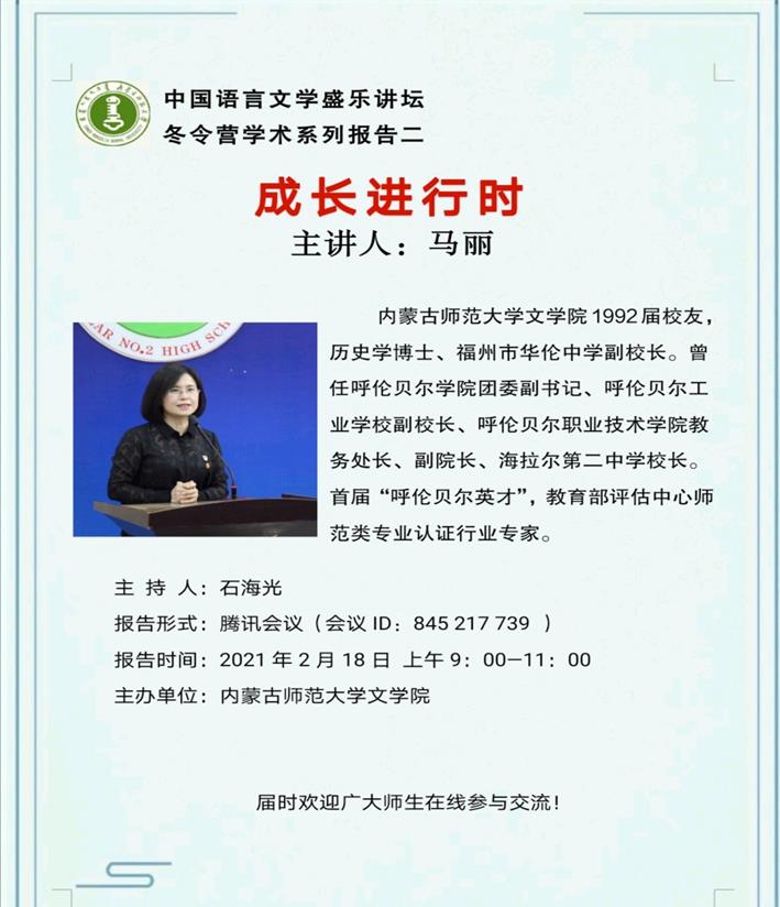 2021年2月18日上午,pg娱乐官网学生寒假学术线上冬令营拉开帷幕,pg娱乐电子游戏官网入口校友马丽博士受邀作专题报告,报告由石海光老师主持,报告题目是:成长进行时。学院200余名师生共同参加了本次报告会。