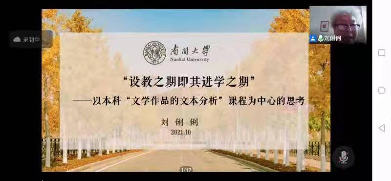 pg娱乐电子游戏官网入口喜迎70年华诞之际,pg娱乐电子游戏官网入口邀请南开大学pg娱乐电子游戏官网入口教授、博士生导师、国务院政府特殊津贴专家刘俐俐教授于10月25日下午为全院师生作了题为“‘设教之期即其进学之期’——以本科‘文学作品的文本分析’课程为中心的思考”的学术讲座。讲座通过“腾讯会议”平台进行,由陆有富院长主持,pg娱乐电子游戏官网入口师生共同聆听了讲座。
