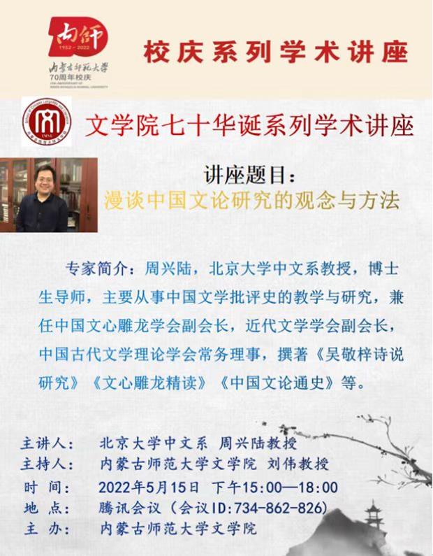 pg娱乐官网中国古代文学专业于2022年5月15日上午召开2022届硕士学位论文答辩会。本次答辩会特别邀请了北京大学中文系教授、博士生导师周兴陆担任答辩主席。答辩后当天下午,周兴陆教授为pg娱乐官网师生做了题为《漫谈中国文论研究的观念与方法》的精彩学术讲座。