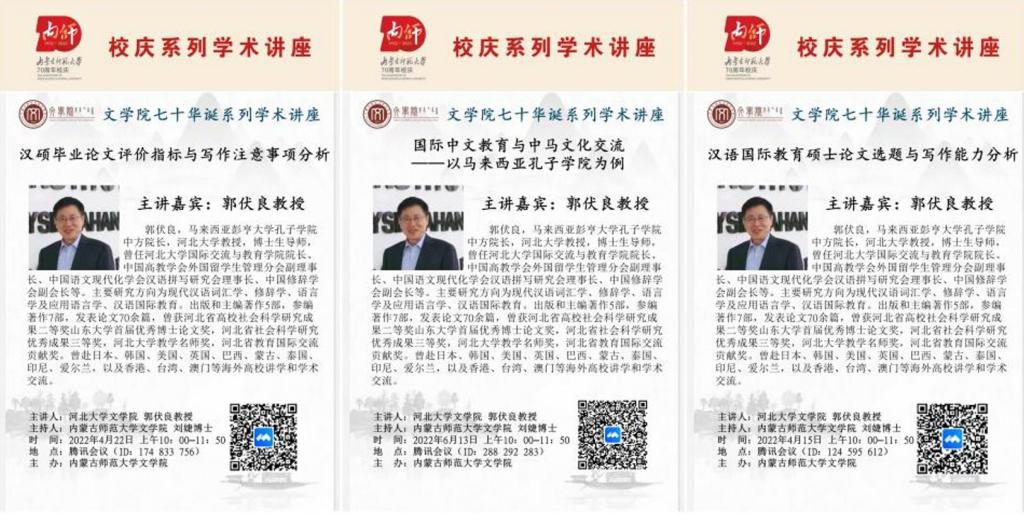 2022年4月15日至6月13日,马来西亚彭亨大学孔子学院中方院长、河北大学教授、博士生导师郭伏良教授应邀为pg娱乐官网师生作了关于汉语国际教育专业硕士研究生学位论文选题与写作的线上系列讲座。讲座共分为三次,分别于4月15日、4月22日、6月13日上午在腾讯会议平台举办。