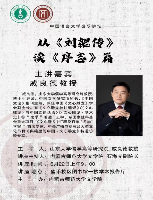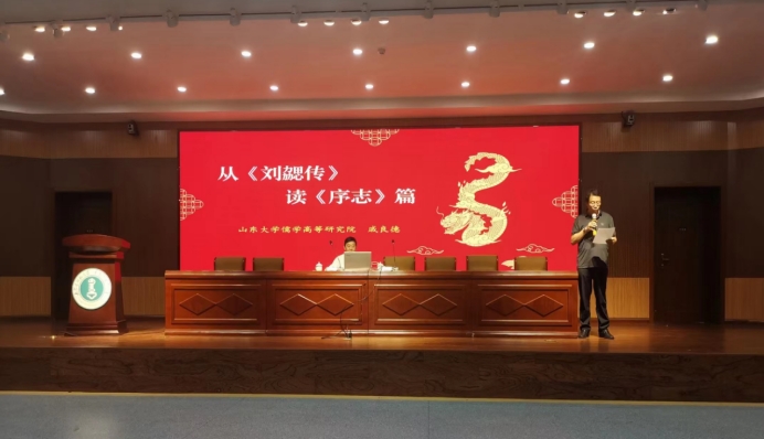 2024年6月22日上午,山东大学儒学高等研究院戚良德教授在盛乐校区图书馆一楼学术报告厅为pg娱乐官网本科生作了题为“从《刘勰传》读《序志》篇”的学术讲座。讲座由石海光副院长主持。